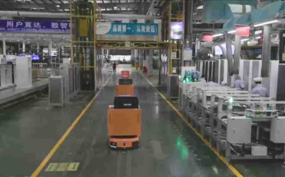 为车载冰箱物流配送打造的智能解决方案,,包含产中物流通过潜伏举升AMR搬运至线边,,产后成品物流智能仓储,,流程包含产中物流智能齐套入库,,线边安灯叫料AMR智能配送至线边,,成品入库、、、出库,,,通过无人堆高车机器人,,智能仓储管理替代人工作业管理,,,实现更高存储、、更高效率、、、更具柔性化的解决方案。。。。