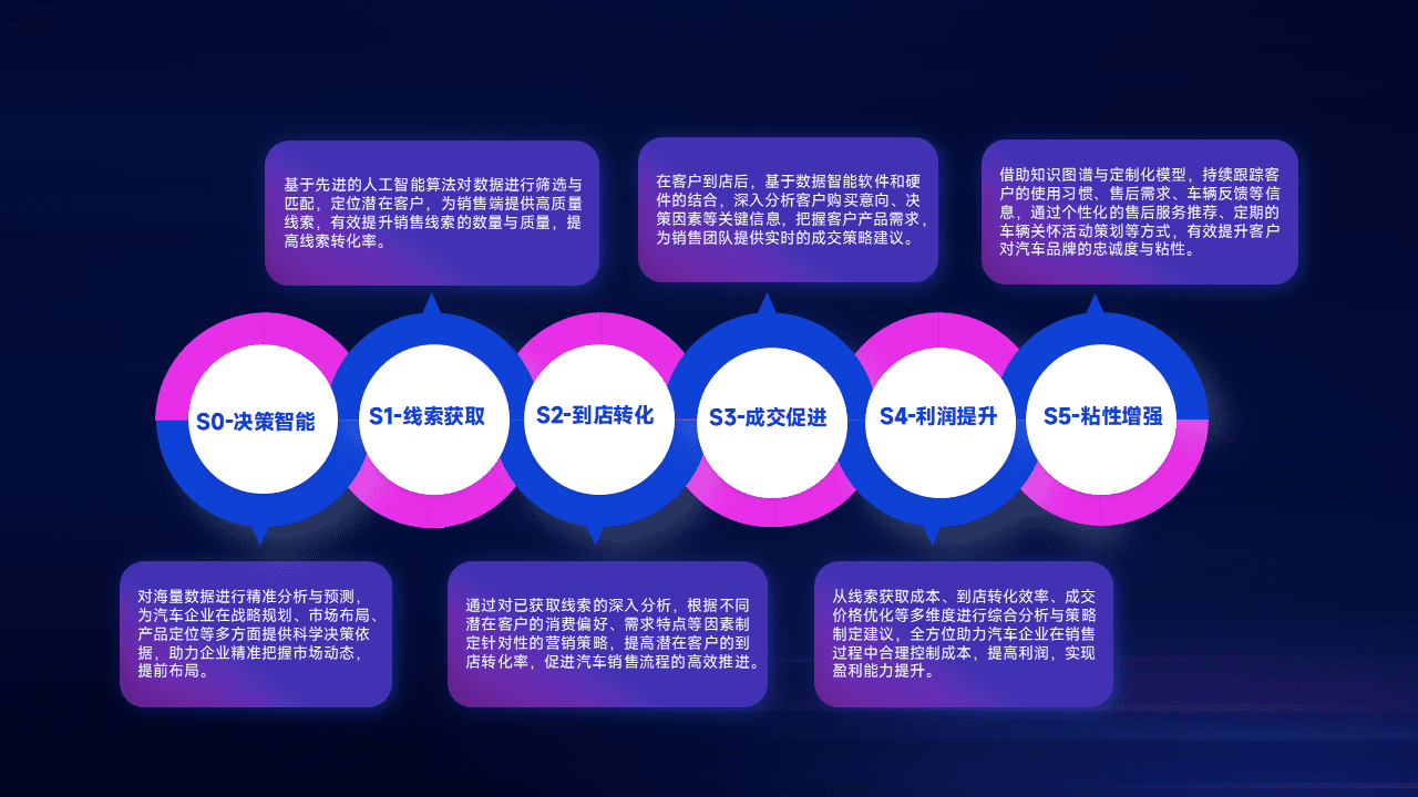 通过拓宽潜在客户来源、、优化线索分配并提高到店转化率,,,以增强销售效率。。。同时,,,利用线索数据不断优化分析模型,,有效提升转化率,,,,扩大营销影响力。。